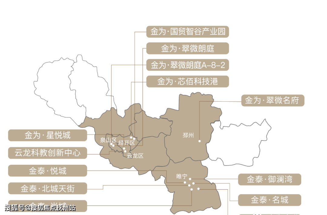 2014年首入徐州,遵照城市成长脉络,八载十三盘,潜心耕作,收成万千信赖。从标杆人居到产城融合,从贸易核心到高铁核芯,金为一直秉承“合建糊口之美“的品牌,取徐州共进,取夸姣共识。徐州代表项目有超等产城大盘云龙区金为·星悦城,且集团于2021年-2022年逆势竞得徐州泉山区两处稀缺室第用地,雄厚实力可见一斑。