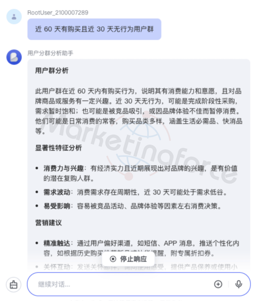 更值得一提的是,AI Agent智能体支撑天然言语交互操做,运营人员无需专业算法学问,通过简单指令即可生成深度阐发报表,将保守需要数天完成的人群阐发周期缩短至分钟级,大幅提拔了营销决策的火速性。