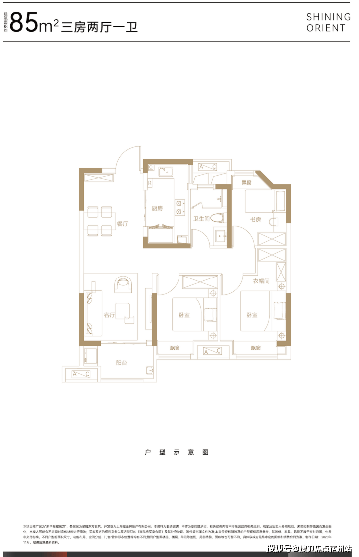 总体来看,85㎡户型上车门槛不高,户型空间舒服,款式朴直,一点也不狭隘,很适合预算无限的小年轻刚需上车。